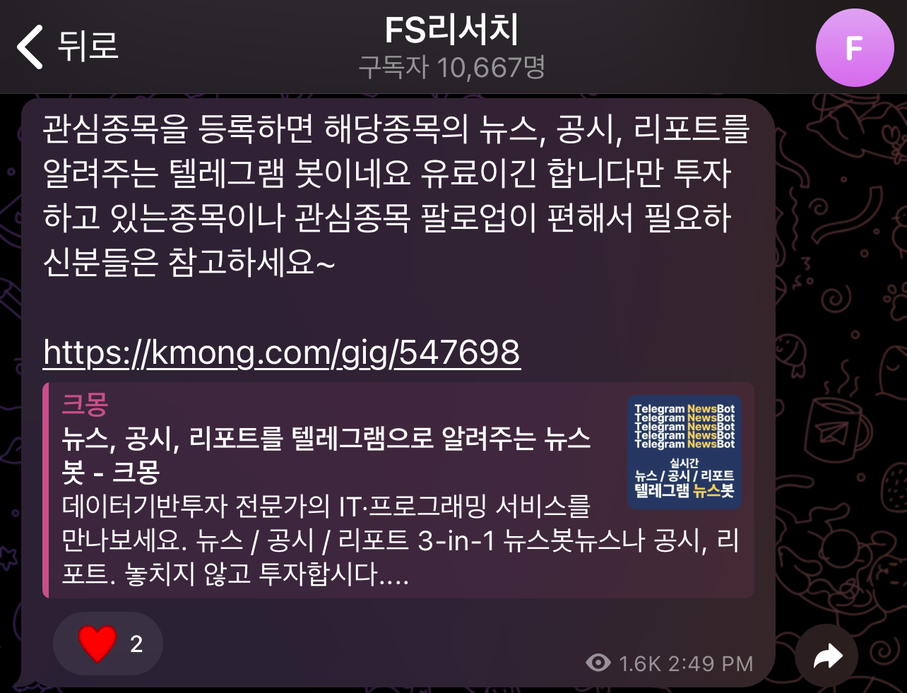 뉴스, 공시, 리포트를 텔레그램으로 알려주는 뉴스봇 - 크몽