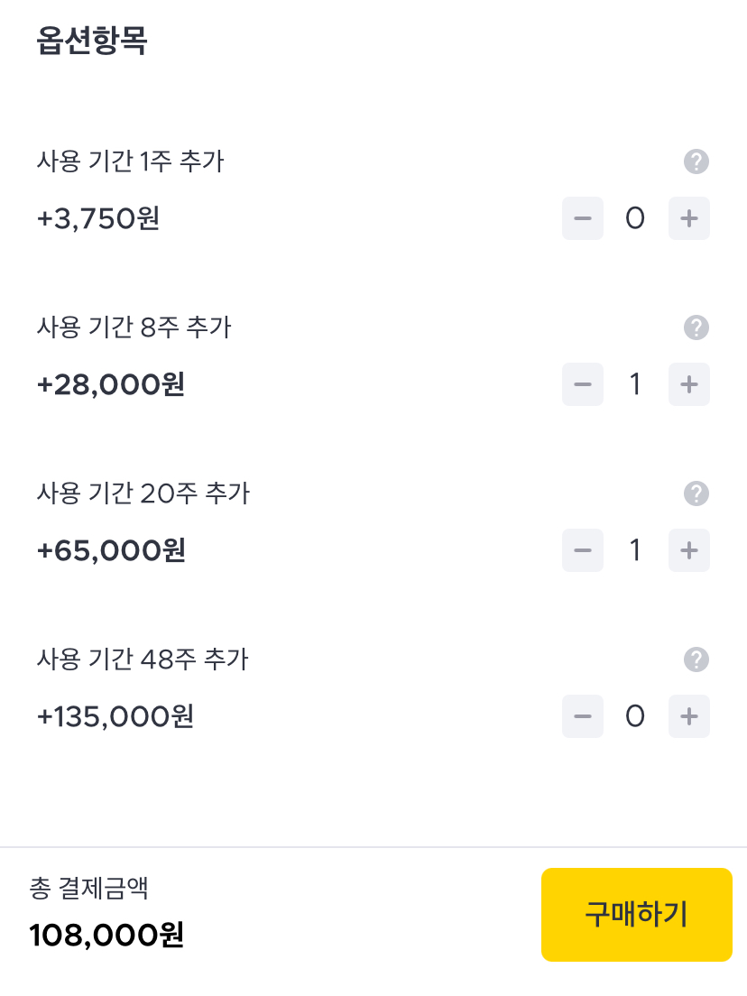 옵션 항목을 잘 넣어서 10만원 이상으로 맞춰보자.