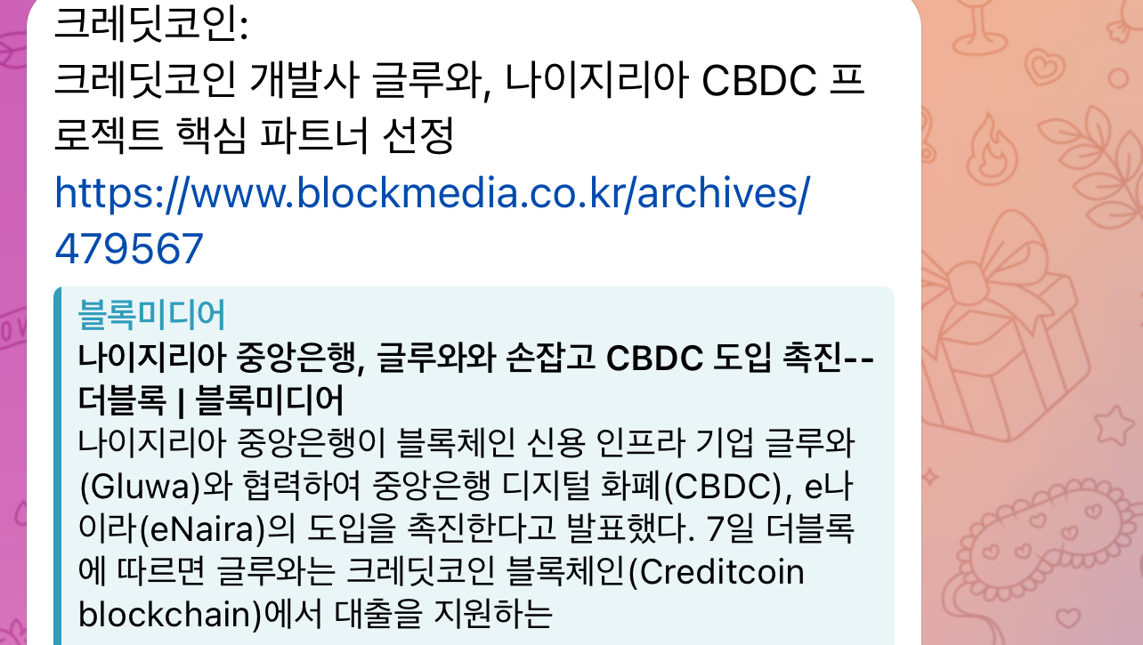 2024-03-07 크레딧코인 상승 이유 - 아프리카 경제 규모 최대 국가 나이지리아와 MOU (CDBC e나이라)